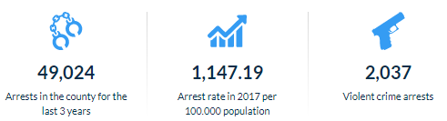 Over the last three years, Hillsborough County recorded a total of 49,024 arrests. In 2017, the arrest rate was 1,147.19 per 100,000 residents, which is 55.23% higher than the national average of 739.02 per 100,000 people. Of these arrests, 2,037 were related to violent crimes such as murder, rape, and robbery, while 13,751 arrests were made for property crimes in the same year. When compared to Alachua and Brevard counties, Hillsborough is considered a more perilous place to reside.