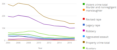 In Hillsborough County, the category of violent crimes encompasses offenses such as murder, manslaughter, rape, robbery, and aggravated assault. Notably, the county exhibits a higher prevalence of non-violent crimes. Specifically, in 2017, Hillsborough reported 2,037 cases of violent crimes and 13,751 instances of non-violent crimes. When compared to the national average of 739.02, Hillsborough’s figures are 55.23% higher than the national average, highlighting a higher incidence of both violent and non-violent offenses.